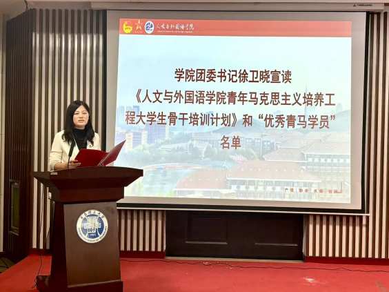 学院团委书记徐卫晓宣读“青马工程”培训班《人文与外国语学院青年马克思主义者培养工程暨学生骨干培训计划》和上一期“优秀青马学员”名单;青马学员代表张子涵做《挺膺前行砺青春,学思践悟担使命》发言;青马优秀学员代表田稳稳做《青春担当,志愿同行》经验分享;张梦羽做《“以青春之名耕耘基层治理”青年倡议书》发言;李菲带领大家集中学习《习近平与大学生朋友们》第二卷。“此次开班仪式使我受益良多,作为一名青马学员,我将坚守信仰之光,把学到的马克思主义理论运用到实际工作中去,锤炼真才实干本领,发挥先锋模范作用。”新一期青马学员代表史佳立说道。