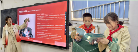 在北庄小学,青马学员结合“红砖”微课堂,以中英文双语形式向小学生进行红色宣讲,将红色故事娓娓道来。知识问答互动环节,小学生们积极举手参与,现场气氛热烈。“听到这些革命故事,我深受感动,明白了革命先烈的伟大,我要好好学习,继承他们的精神,为祖国的未来贡献自己的力量。”北庄小学一名小学生在活动结束时说道。