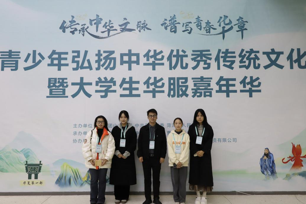 近日,全国青少年弘扬中华优秀传统文化暨大学生华服嘉年华活动在山东曹县e裳小镇·数字经济产业园开幕,我校学生社团清涟华裳汉服社指导教师张凤波与社团4名学生受邀参加本次活动,与来自全国高校的汉服爱好者共同感受华服魅力,共展青春风采。