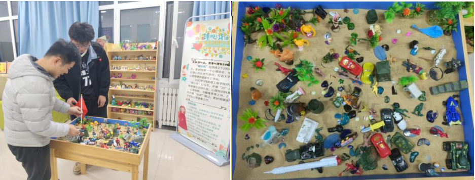 “放松沙盘”是一种基于沙盘游戏疗法的心理辅导工具。同学们通过触摸和摆放沙盘中的各种模型,构建出个人内心世界的外在表现。通过理心坊心理协会举办的心理沙盘活动,使同学们以直观的方式表达内心的情感状态,从而达到自我探索和心理调适的目的。