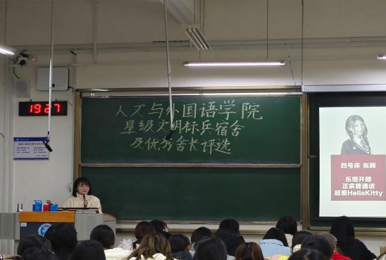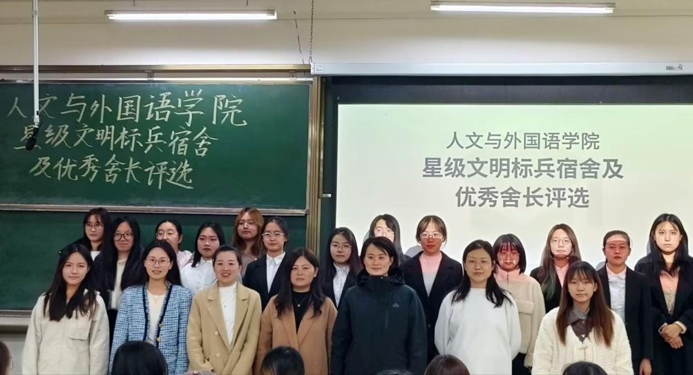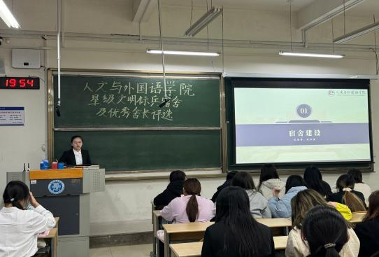 为深入推进“一站式”学生社区建设,提升学生社区育人功能,营造健康向上的宿舍文化氛围,展现优秀宿舍风采,11月24日,人文与外国语学院在主教学楼B108开展星级文明标兵宿舍及优秀舍长评选活动。