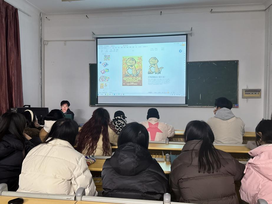 在分享过程中,潘旭旭展示了自己的一些获奖作品,并详细解析了这些作品的设计理念、创作过程和技术实现等方面的内容。他结合诸城设计项目,生动描述了项目中恐龙形象的历史溯源、形象特点、设计意义与价值。他提到,设计不仅仅是为了美观,更是为了传递文化和故事。通过创意恐龙的形象设计,不仅将一个充满趣味且易于传播的形象呈现给公众,还赋予了这些史前巨兽以人性化的情感,使得它们的形象更加生动和亲切。