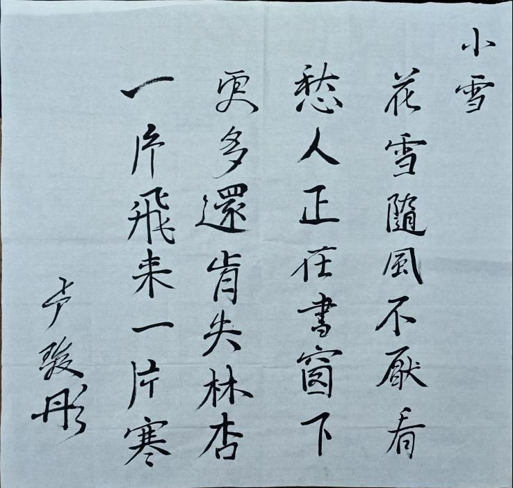 墨舞雪韵,古今竞辉。现场墨香浓郁,与室外小雪的清冷气息形成鲜明对比,同学们以笔为舟,泛墨海而游,穿梭于古今文字之间,展现了对传统文化的深厚情感与传承之志。小雪的清新与纯净,融入同学们的笔墨之中,使得每一幅作品都散发着独特的韵味和气息。一幅幅佳作渐次见形,既展现技艺,又架通古今、自然与人文之桥,让这个冬日因书法之美而更加温暖。