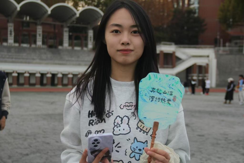 在完成游戏打卡后,同学们开始漆扇制作环节,同学们挑选自己喜欢的颜色,制作属于自己风格的漆扇作品,有的梦幻如星河,有的温润如美玉。