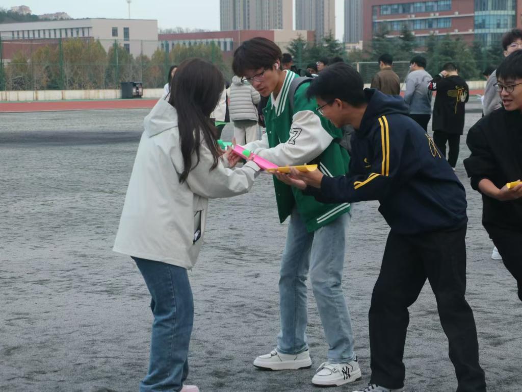 在活动场地,同学们先后领取活动打卡本,三俩人成一组,在志愿者的热心指导下进行旋转射门、水到渠成、心有灵犀等趣味小游戏,在丰富同学们课余时间同时,也将运动与健康融入其中,现场一片欢声笑语,深得同学们的广泛好评。