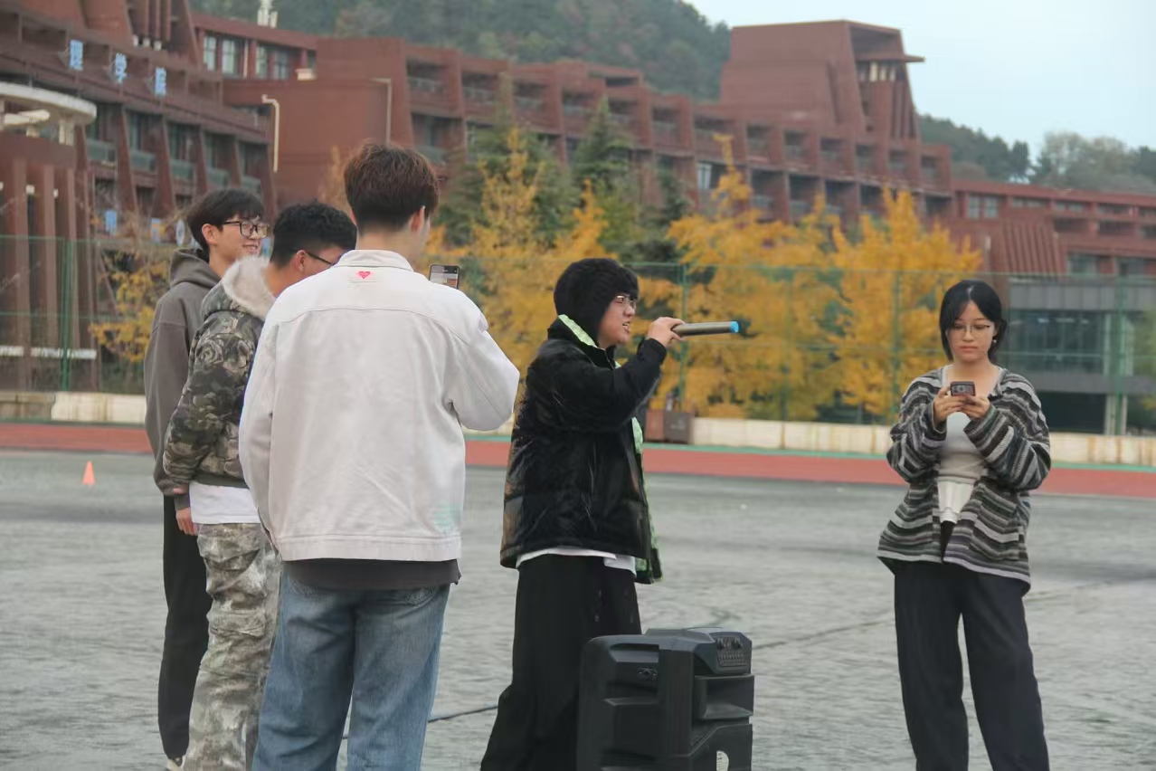 游戏结束后,大家围坐在一起,欣赏由校大艺成员带来的歌曲串烧表演,活动在同学们的大合唱落下了帷幕。