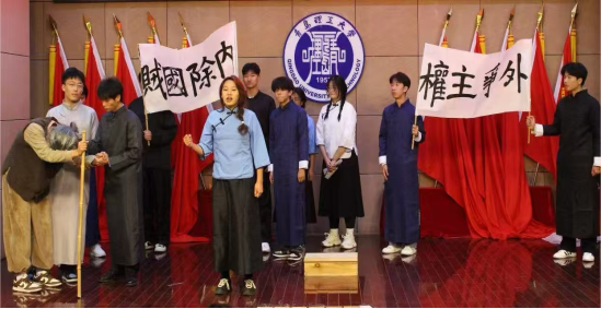 “积贫积弱,山河蒙羞,内忧外患,国破家亡。民族觉醒,独立解放,改革振兴,国运日昌。”在市北校区学术报告厅,“纪念一二·九暨国家公祭日”主题思政话剧展演活动在学生演员铿锵有力的《和平宣言》朗诵中拉开帷幕。同学们在话剧演绎中融入情境,《觉醒年代》《烽火中的呐喊》展现了时代青年为了理想和信仰不懈奋斗的精神,体现出青年人朝气蓬勃的精神风貌;《华北往事》《火种·传承》两部作品诠释了历史的沧桑巨变,让学生们深刻感受到历史的厚重感和人类的情感深度。“百读不如一演”,学生们用精彩的表演,将爱国主义教育用更加生动的舞台形式演绎出来,让更多的人铭记这段历史,珍惜现在的和平。