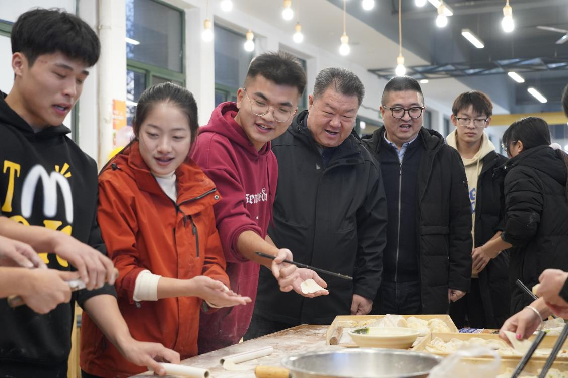 孙波亲切问候在场同学,“在这个温馨团聚的冬至时节,我代表学院全体教职工,向来自五湖四海、不同民族背景的同学们致以最诚挚的节日问候。希望每一位来自不同民族的同学都能在这里找到归属感,自信地展示自己民族的文化魅力,同时也积极吸收其他民族的优秀文化,共同成长,共同进步”。大家围坐在一起,品尝着亲手制作的美食,分享彼此的故事和祝福。