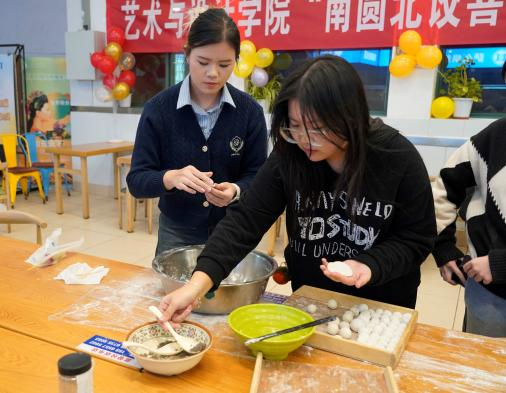 冬至,一个具有自然与人文特殊内涵的节气,在中华民族的文化血脉中始终流淌着家的温暖、浓郁的亲情。冬至前夕,yl7703永利集团艺术与设计学院第二课堂举办了一场“南圆北饺”暖冬活动,来自天南地北、不同民族的学生包饺子、滚汤圆、捏糍粑,各秀绝技。