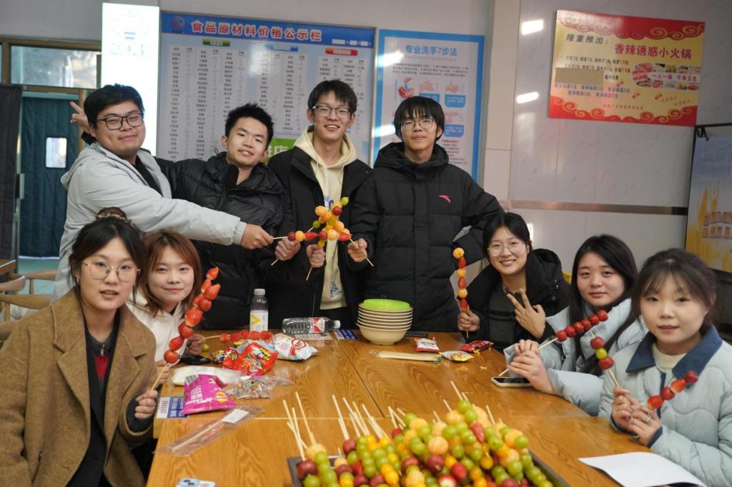 “糖葫芦好看,竹签儿串……”歌声洋溢在活动现场,同学们手持竹签,精心挑选颗粒饱满、色泽鲜亮的山楂果,小心翼翼地穿起了一串串晶莹剔透、诱人可口的糖葫芦,欢声笑语此起彼伏。大家一边品尝亲手制作的糖葫芦,一边分享心得感受,空气中弥漫着甜蜜与幸福,一张张合照定格了师生们欢聚一堂、共享温馨的瞬间。