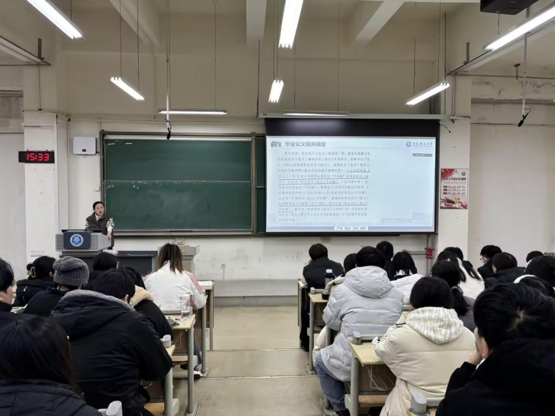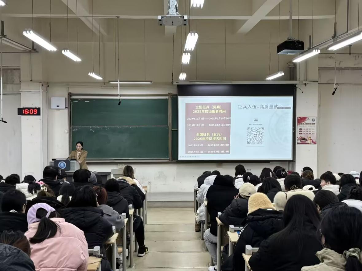王粲结合近几年的就业数据,对当前就业形势进行系统分析,提醒毕业生要拓宽眼界,及早规划,以应对复杂多变的就业环境。同时,为毕业生提出几点要求:一是要知己知彼,建立清晰的自我认知,对招聘企业和岗位要进行认真研判分析,充分做好求职就业准备;二是及时调适求职心理,树立积极向上的求职心态和择业观念;三是认清当下复杂严峻的就业形势,主动出击,将个人发展与社会需求相结合,在服务国家建设需要的过程中实现自我价值;四是要提高风险防范、合法权益保护等意识,增强就业信息分析力,防止跌入各类求职陷阱。最后,王粲强调学院高度重视毕业生就业工作,通过全方位、多层次的措施,全力为毕业生及时、顺利就业保驾护航。