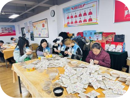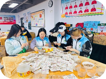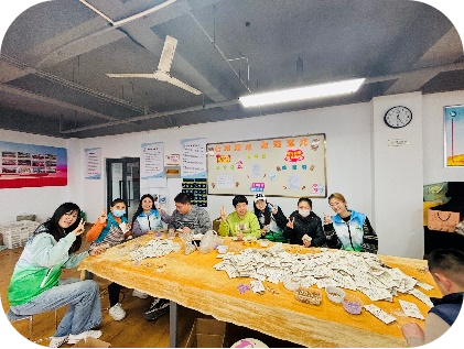 在此次实践过程中,志愿者们积极参与了春雨残疾人辅助性就业中心的多项活动。首先,志愿者们与残疾人共同参与手工艺品制作,包括产品包装、零件组装和标签粘贴等任务。这些工作不仅提高了残疾人的动手能力与自信心,还为他们创造了收入来源,让他们感受到通过劳动实现自我价值的满足。同时,志愿者与残疾人建立了深厚的情感联系,深入了解了他们在日常生活中面临的挑战,并通过合作与交流增强了他们的社交信心。