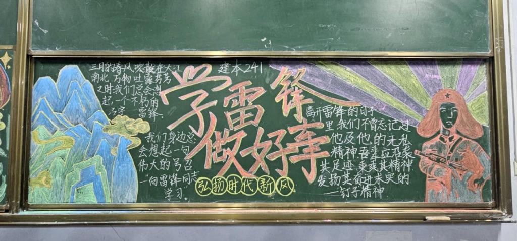 执笔绘“锋”采,传递正能量。学院积极开展“学雷锋主题板报创作”活动。各班级同学怀着对雷锋同志崇高的敬意,紧扣“新时代雷锋精神内涵”,认真绘制雷锋形象,将雷锋精神内涵、雷锋语录、事迹等核心要素融入其中,更加直观地传达雷锋精神,传递正能量和人文关怀,让雷锋精神永存在每一位学生心中,引领学生前行的道路。
