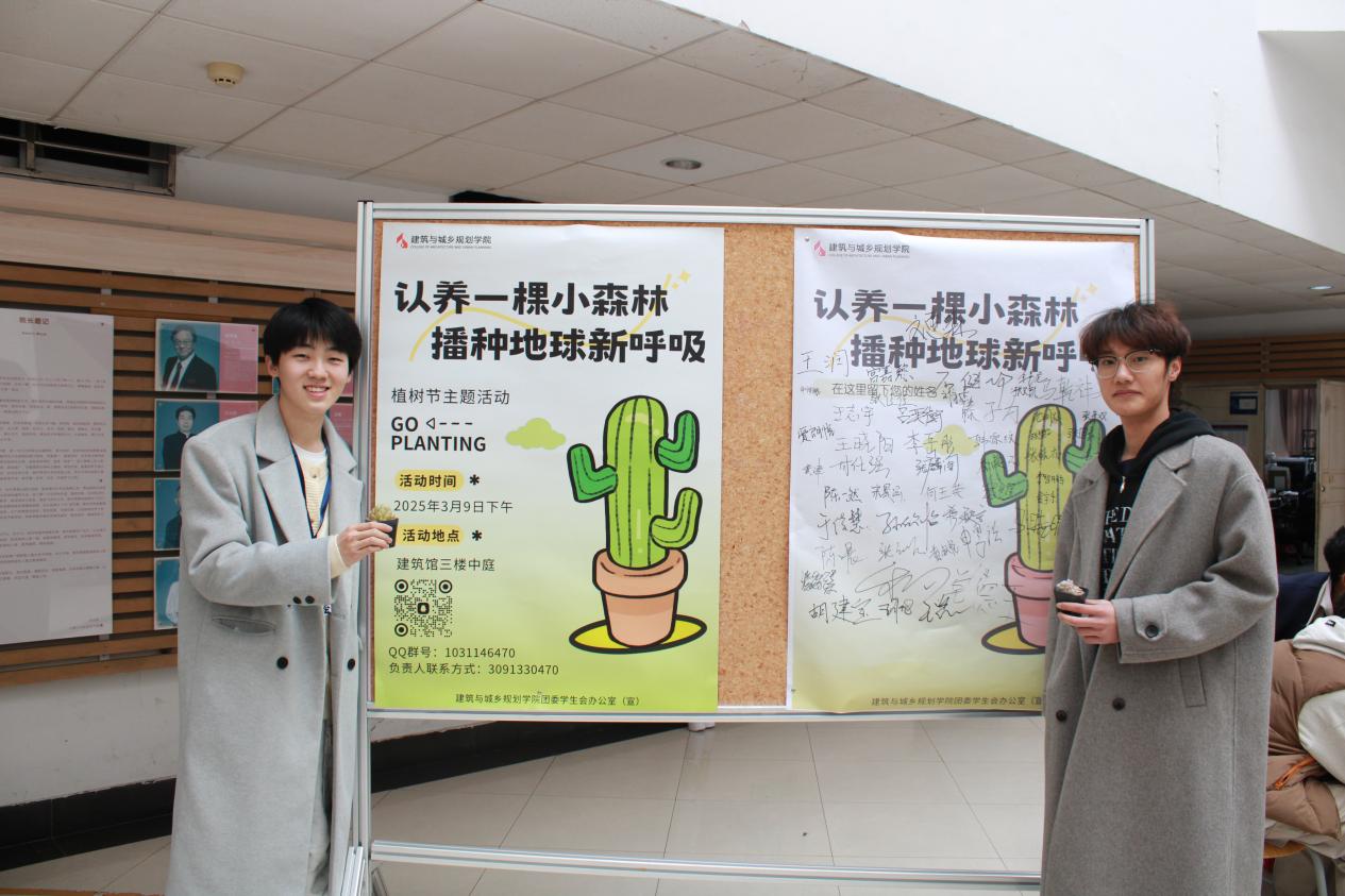 为积极响应国家生态文明建设的号召,深入践行绿色发展理念,切实增强学生的环保意识与社会责任感,在第四十七个植树节来临之际,建筑与城乡规划学院组织开展“同植希望,共树未来”植树节系列活动。