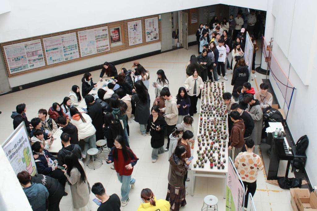 绿植来认领,心语共传递。为引导青年学子树立生态责任意识,以实际行动践行绿色发展观,3月9日,学院在建筑馆三楼举办绿植认养活动。活动现场,同学们热情高涨,在完成知识问答、问卷调查等环节后,获得了领养绿植的绿色贴纸,每一位同学都怀着对绿色生活的向往,小心翼翼地将自己的多肉植物带回宿舍或生活空间,部分同学在现场绘制了明信片,写下对地球与未来的美好祝福,用画笔勾勒出生态愿景,增强了学生“爱绿、植绿、护绿”的环保意识,营造了温馨舒适的学习生活环境。