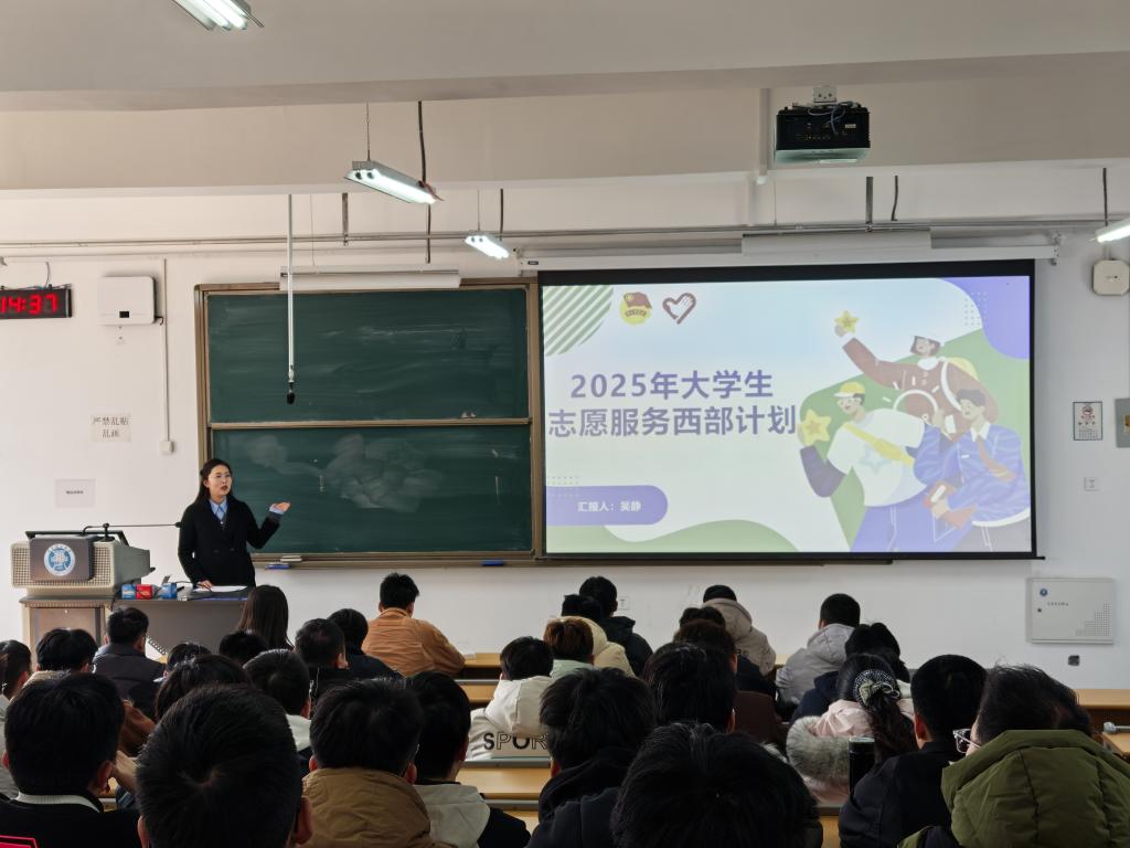 为引导青年学子厚植家国情怀,鼓励学生投身西部基层建设,3月19日下午,土木工程学院邀请校团委吴静老师为2021级本科生作“青春向西行 奋斗绽芳华”西部志愿者计划专题宣讲。讲座于二教303教师举行,80余名学生到场聆听,现场气氛热烈。