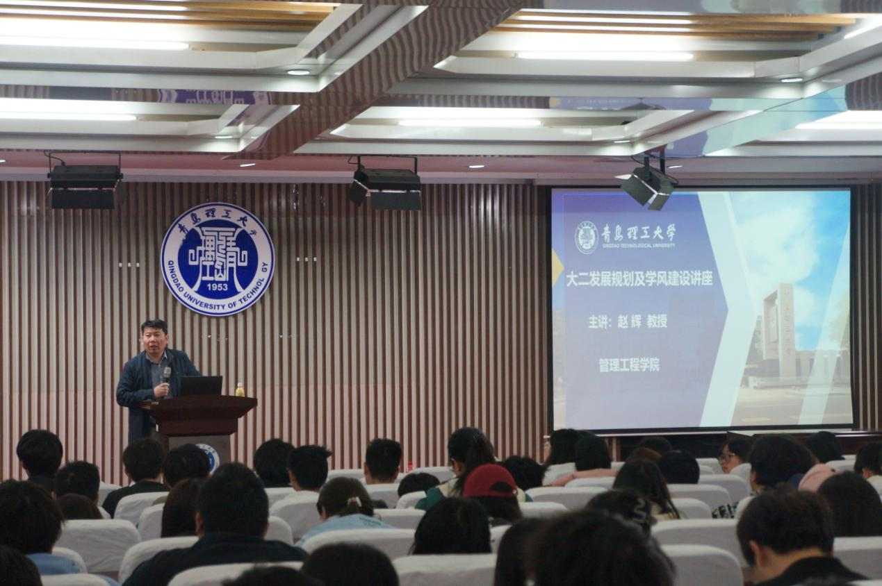 赵辉结合自身经历,为同学们分享了自己的大学规划和考研经验。他指出,大二年级学生目前正处于迷茫的状态中,需要通过丰富的认识来不断完善自己的规划,并就当前就业、考研、出国三个方向进行了深入的利弊分析,便于同学们能够结合自身发展需要做出最恰当的规划。他以刚刚结束的考研复试为例,深入分析了专业知识在考研过程中的决定性作用。他谈到,扎实的专业知识不仅是考研成功的关键,更是同学们未来就业乃至整个人生发展的重要基石,呼吁同学们要重视专业知识的学习,努力提升自己的专业素养,为未来的职业生涯做好充分准备,鼓励同学们树立考研的导向,以考研为抓手,增强对自己、专业、学院、行业的自信心,督促自己拓宽知识的广度,提高认识,增强竞争力,最后,他寄语同学们大学时光宝贵而短暂,切勿虚度光阴,要充分利用这四年的学习时间,不断提升自己。