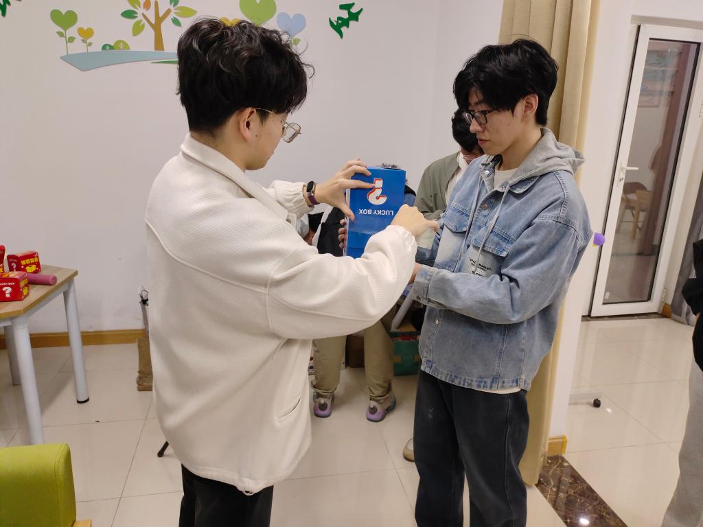 活动结束后,同学们纷纷在活动群里分享拆盲盒视频,寻找物品的原主人,互相认识,互相祝福。本次活动通过封装个人闲置物品和温暖心语与匿名匹配者进行交换,迎来一场心灵与心灵的碰撞,不仅实现了资源的循环利用,更在无形中搭建起了一座座心灵的桥梁,让爱与温暖在同学们之间传递。