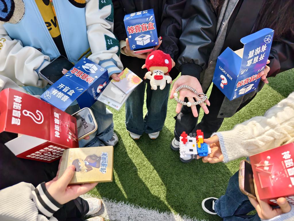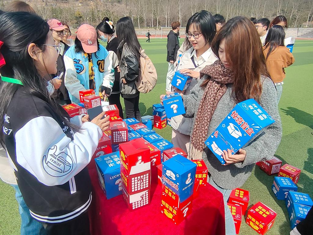 同学们满怀期待地来到活动现场,兴奋地抽取属于自己的心物盲盒。