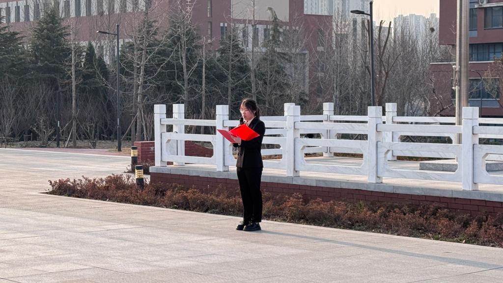计科222班团支书杨迪以“践行诚信,勇担使命”为主题发表国旗下演讲。在演讲过程中,杨迪紧密联系同学们的学习与日常生活实际,生动地讲述了一个个蕴含着诚信力量的动人故事。她提到,在日常的学业中,诚信是独立完成作业、杜绝抄袭作弊的坚守;在与同学们的相处里,诚信是遵守承诺、真诚相待的基石。通过这些贴近生活的实例,她号召同学们将诚信意识深深融入到日常生活的点点滴滴之中,以切实的行动来践行新时代青年所肩负的责任。