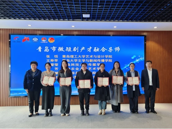 艺术与设计学院党委副书记、副院长张恬被聘为青岛市微短剧产才融合导师,并现场发放聘书。她表示“微短剧行业发展生机无限,为有创作能力、艺术审美、非影视科班出身的艺术与设计类毕业生提供了“转职”的机遇,艺术与设计类专业毕业生要正视当前设计行业发展受限、就业岗位减少、竞争激烈的就业环境,也应该看到微短剧行业快速兴起所创造的新型就业机会,拓宽求职视野,转变就业思路,形成与时代同步的职业选择。”