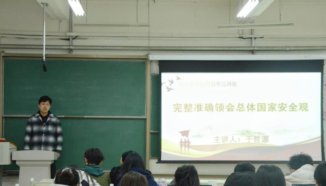 以案明责・筑牢防线。为引导学生树牢总体国家安全观,增强维护国家安全的责任感,环境与市政工程学院举办“国家安全·青春挺膺”专题宣讲活动。辅导员于哲源结合典型案例,为学生上了一堂沉浸式国家安全警示教育课。于哲源以某涉密科研基地间谍渗透案例的事件为切入点,深入剖析境外势力以交友招聘为名,诱骗学生拍摄涉密场所的惯用手法,强调大学生群体因社会经验不足易成渗透目标。