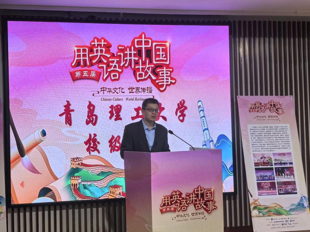 为弘扬中华优秀传统文化,增强学生文化自信,提升跨文化传播能力,4月16日,由中国国家创新与发展战略研究会、中国教育电视台与新航道国际教育集团联合主办,学校创新创业学院、人文与外国语学院承办的第五届“用英语讲中国故事大会”校赛决赛在黄岛校区主教学楼一楼东报告厅举行。人文与外国语学院院长郭印、团委书记胡彤参加活动,学院英语专业教师张艳、毕纪芹、钟晓云等受邀担任本次大赛评委。