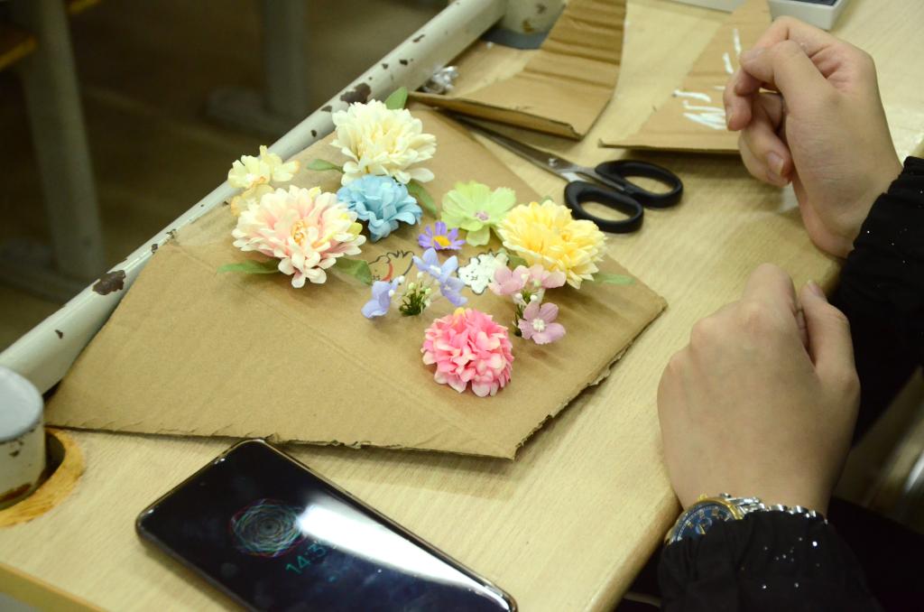 活动现场气氛热烈,同学们相互交流、互相帮助,分享着各自的创意和技巧,共同享受手工创作的乐趣。
