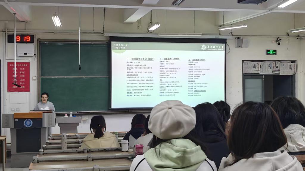 活动伊始,签约中国水电九局的朱金林结合土壤修复岗位实战经验,深入剖析秋招、春招的“黄金期”策略,强调“技能匹配+行业深耕”的重要性,并推荐“国聘网”“青理就业”等高效求职渠道。李卫新分享了个人的求职准备历程,建议学弟学妹们吃透专业核心课、掌握目标区域或企业的特征,指出在就业竞争中,“专业技能+实践能力+行业认知”的综合提升是获取理想offer的关键。山东省考上岸的栾媛媛详细拆解了行测、申论的提分技巧,提出“6+0.5+0.5”学习周期法,鼓励大家坚持日常练习,以错题为友,在查缺补漏中成长。