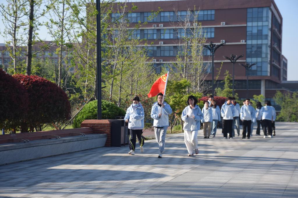团旗飘扬接力跑,青春献礼新征程。54名团员青年代表手持共青团团旗,在礼贤广场开展“薪火相传·青春接力”主题接力跑活动,以团队接力的形式完成5.4公里奔跑,并在终点处用队列拼出“106”造型,纪念五四运动106周年。手持团旗的奔跑队伍成为校园一道亮丽风景线,象征着五四精神代代相传、生生不息。参与接力跑的研究生代表魏玉洁同学表示:“手持团旗奔跑时,我感受到一种强烈的使命感。作为新时代青年,我们要以五四精神为指引,在学习和实践中敢于担当、勇于突破,跑好属于我们这一代人的‘青春接力赛’。”