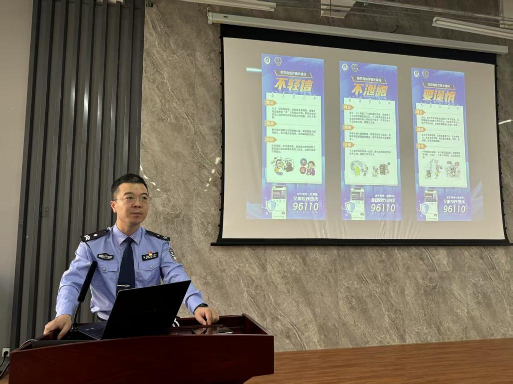 活动中,杨警官首先介绍了网络电信诈骗的几大常见陷阱,结合高校频发的电信诈骗案例,向同学们详细解析了刷单返利、校园贷、冒充亲属朋友等常见诈骗手段。他特别强调,诈骗分子往往利用大学生社会经验不足、防范意识薄弱的特点,通过伪造身份、制造紧迫感等方式诱导转账,分析了大学生容易受骗的心理因素,包括贪图小利、畏惧威胁、信息泄露等。接下来,杨警官又为大家普及了电信诈骗违法行为的法律依据,并在活动最后强调不要卸载国家反诈中心app。