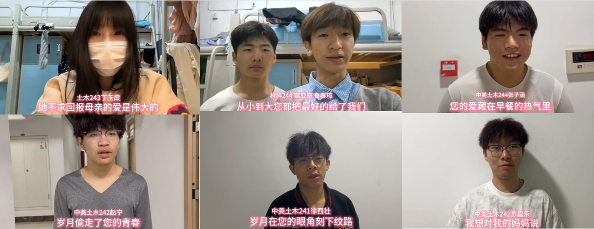以镜头为笔,定格母爱真情。“妈妈,我想对您说”短视频征集活动发布后迅速点燃了同学们的热情。同学们积极响应,通过短视频形式,或讲述童年记忆中的点滴温情,或回顾成长路上的悉心叮咛,或倾诉求学他乡的思念与牵挂,用影像和声音镌刻母爱的温暖瞬间。中美土木244班张子涵激动地表示:“这个活动让我有机会放慢脚步,反思和感受与母亲在一起的时光。母亲为我们付出了很多,我们应当更加珍惜。”