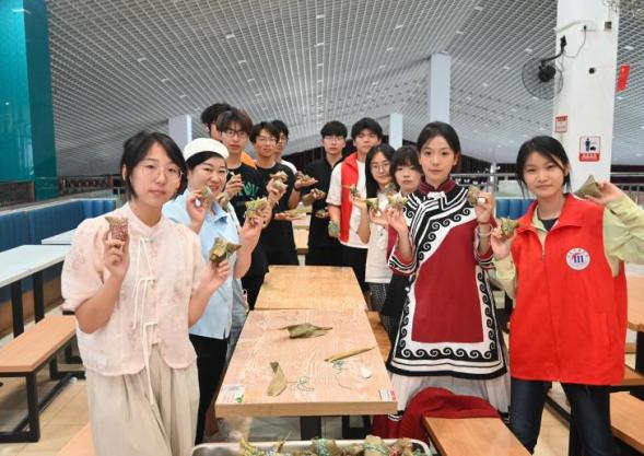 5月28日,学院举办“粽情端午,共话团圆”主题活动,学院少数民族学生欢聚一堂,共庆佳节。活动现场,部分少数民族同学还身着特色民族服饰前来参与。大家围坐在一起,配合默契,巧手共包“团结粽”,“第一次穿着民族服饰和大家一起包粽子,感觉特别温暖!”材料科学与工程244班马文琳笑着说,“以后我也要把这份快乐传递给家乡的亲人们。”最后,同学们将包好的粽子送到后勤保洁、安保、食堂工作人员手中。食堂负责人刘卫民接过粽子时满脸笑意:“平时总想着给孩子们做好吃的,今天收到他们亲手包的粽子,心里暖乎乎的!这份心意,让我觉得再辛苦都值了!”飘香的粽子不仅承载着节日祝福,更传递着同学们对校园守护者的敬意与感谢。