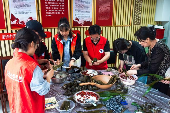 5月24日,土木工程学院思源社走进即墨路街道小港社区开展“粽叶飘香情意浓,美好生活齐共享”主题实践活动。小港社区党委书记王伟华、社区志愿者与同学们围坐在长桌旁,一边包粽子,一边唠家常,现场气氛温馨融洽。在小港社区晓港名城二期业委会主任李梅的带领下,同学们将包好的粽子送到孤寡老人、困难家庭和老党员家中,关切询问生活近况、身体状况,用暖心话语传递节日祝福。中美土木231班林发表示:“这次活动特别有意义,以前觉得党建工作离我们很远,现在才发现,原来亲手包的粽子、送到居民手里的关怀,就是最生动的社区实践。”