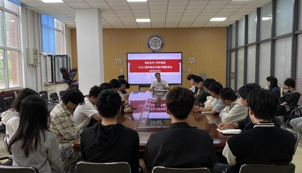 开展反诈宣传会议,筑牢校园安全防线。为切实增强学生的反诈防骗意识,有效遏制电信网络诈骗案件在校园内的发生,5 月 23 日,土木工程学院党委副书记、副院长王鹏飞主持召开了防范网络诈骗主题教育交流会,各年级辅导员及学生骨干代表参加了此次会议。王鹏飞指出,当前电信网络诈骗手段不断翻新,隐蔽性和欺骗性极强,严重威胁着同学们的财产安全。他结合近期发生的多起校园电信诈骗案例,深入剖析了刷单返利、网络贷款、虚假购物等常见诈骗类型的作案手法和特点。提醒同学们务必时刻保持警惕,克服贪念,遇到可疑情况要及时与老师、家长沟通,或向公安机关咨询,进一步强化了学生的反诈安全意识,为构建平安和谐校园奠定了坚实基础。