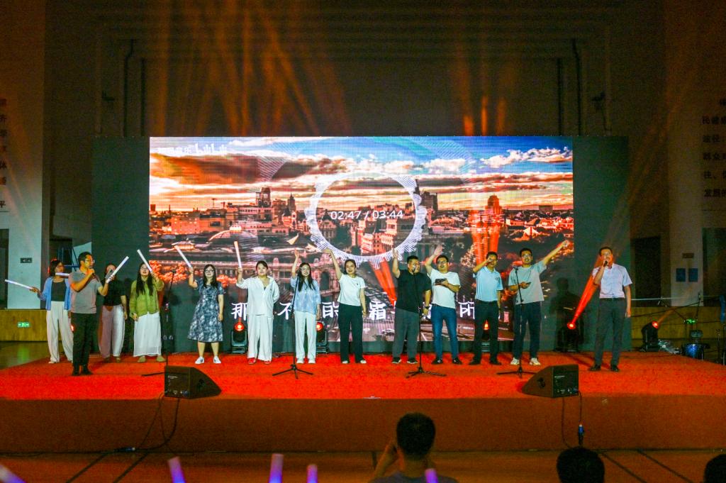 继辅导员孙宇与毕业生刘佳仪共同演唱歌曲《篇章》之后,全体辅导员老师以一曲《今天》为晚会拉下了帷幕。老师们走上舞台,目光掠过台下熟悉的面孔,歌词“等了好久终于等到今天”化作四年来无数次深夜谈心、就业指导、节庆关怀的缩影。台下毕业生轻轻跟唱,有人红了眼眶——那些在实验室陪他们调试数据的傍晚、在运动会现场呐喊助威的瞬间、在疫情期间奔波送物资的身影,都在歌声中清晰如昨。