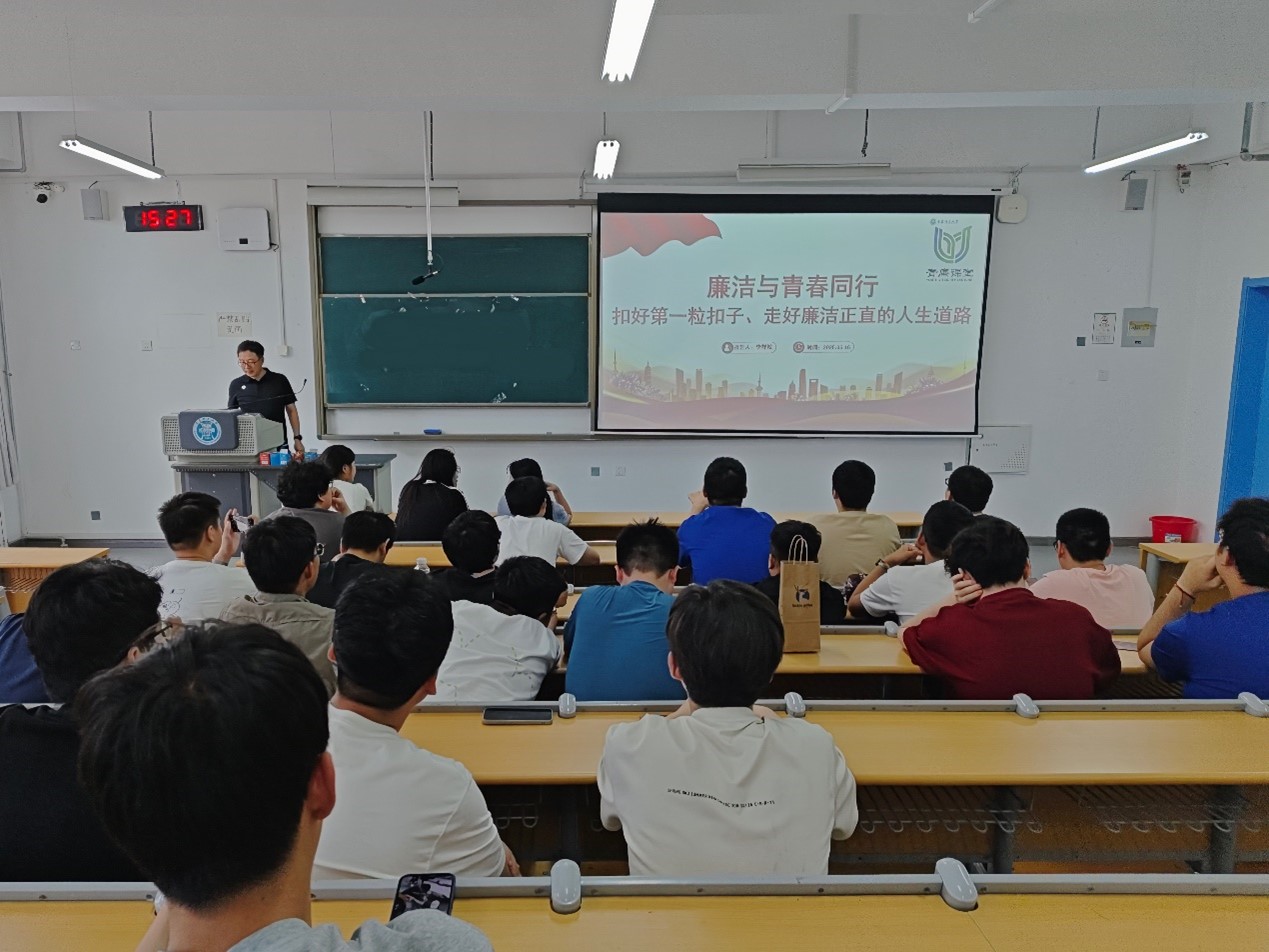 李祥城以《廉洁与青春同行---扣好第一粒扣子,走好廉洁正直的人生道路》为题,从志存高远,百折不挠,用奋斗的青春成就事业华章;明辨是非,刚毅厚重,用明纪守法坚守人生底线;崇廉尚洁,勇承重载,用修身齐家践行初心使命;情系祖国,坚定信念,用身清气正传承母校精神四部分内容入手,阐述了青春学子要以青春之我,响应创建青春之中国的时代呼声。他强调当代大学生要以志存高远为帆,百折不挠为桨,明辨是非为镜,刚毅厚重为盾,常怀律己之心,常思贪欲之害。活动后,同学们反响热烈,土木219班副班长严坪洋表示:“在今后的科研、工作、生活中,我将谨记老师的谆谆教诲,把本堂课的内容内化于心,外化于行,自觉扣紧廉洁自律的扣子。”