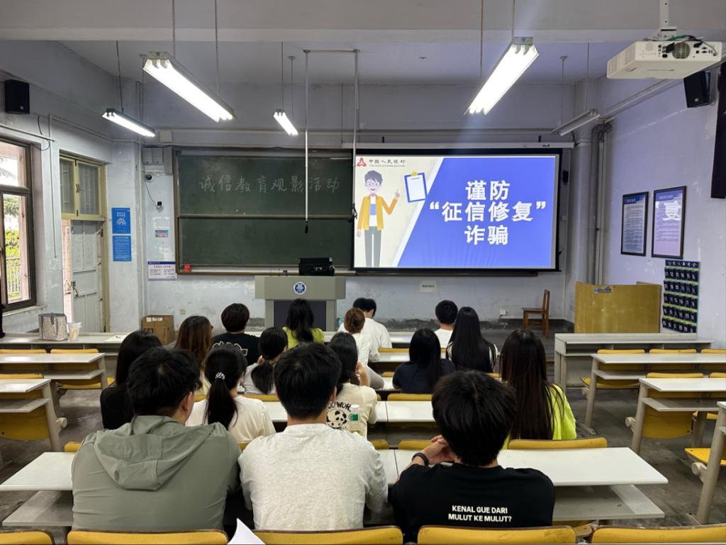 融诚于心,涵养新时代青年廉洁文化。为增强学生征信及反洗钱诚信自律意识,6 月 16日,学院组织师生集中观看个人征信专题宣传视频。视频围绕征信修复诈骗识别、反洗钱知识普及、个人征信合规使用三大核心内容,模拟诈骗场景,揭露 “征信修复代理” 等新型骗局话术,并系统指导了个人征信维护的要点。此次观影活动有效提升了学生对征信诈骗与违规操作的识别能力,为其在未来生活中筑牢认知基础。