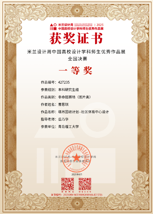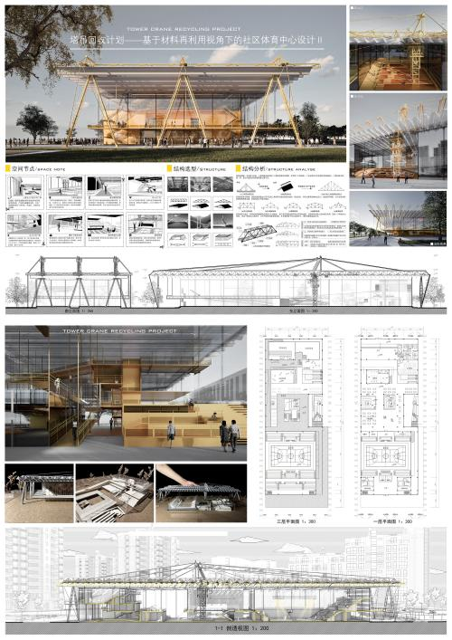 在本届赛事中,建筑与城乡规划学院参赛作品在紧扣社会实际需求的同时,巧妙融合地域文化特色与可持续发展理念,生动形象表达了建筑设计与生态环境、人文关怀的有机统一,彰显了学院在建筑设计教育领域的创新实力和育人成效。其中,《塔吊回收计划--社区体育中心设计》作品基于打破废弃塔吊的传统回收方式,实现建筑材料的回收利用,通过创作实现建筑的全生命周期碳排放,完成未来城市的扩建,其独特设计理念得到了专家的一致认可,获得国家级一等奖。《阈园叠隙——基于泵闸基础设施公共性增殖的实验重构》作品以“园”为主要概念,对上海市一水闸进行存量更新,为市民提供公共活动空间,在保留原有泵闸功能的基础上,通过空间叠合与功能复合的设计手法,实现了基础设施的公共性增值,为城市微更新提供了可借鉴的实践样本,最终荣获国家二等奖。
