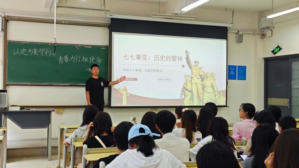 为纪念抗战胜利80周年和“七七事变”88周年,深切缅怀抗战英烈,激发青年学子的爱国情怀与使命担当,商学院组织开展“以史为鉴守初心,青春力行担使命”纪念“七七事变”主题教育活动,引领青年学子在历史回望中汲取奋进力量,践行新时代青年使命担当。