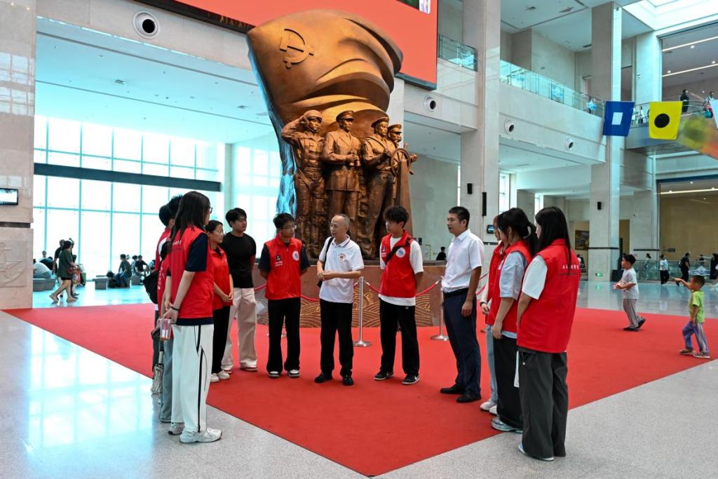 老兵述峥嵘,青年践传承。8月31日,学院学工办主任、团委书记王俊富带领学院青马学员骨干20余人,赴中国人民解放军海军博物馆聆听了一堂行走的思政课。“中华人民共和国成立70周年纪念章”获得者、青岛市首批“红色宣讲人”退役军人马建伟为大家现场教学。活动中,大家循着展陈脉络探寻人民海军发展历程,从老式枪械的磨损痕迹、水兵黑白照片里的坚毅笑容、泛黄文献中的铿锵誓言中触摸历史,又在马建伟讲述的“寒冬海边训练捂手坚持”“深夜站岗守海疆”等鲜活故事里领会革命精神,大家合影留念,让老兵勋章见证这份传承。