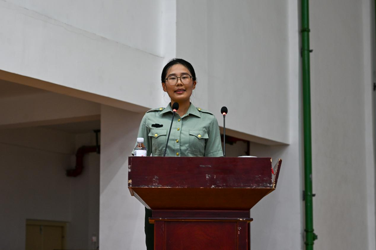 土木237薛淼分享自己的军旅故事。“我的军旅梦,早被舅舅种在了心里。”薛淼回忆到,四年前18岁的自己也曾陷入迷茫,是入伍二十年、17岁参军便在第二年拿下全军比武第一名的舅舅,用一个个军营故事为她点亮了前路。“舅舅总说,部队能把人磨出棱角,也能让人找到初心。”2022年3月,带着这份向往,薛淼正式穿上军装,成为中国人民解放军联勤保障部队的一员。从军营里的“话务尖兵”到校园中的“全能学霸”,薛淼用两年军旅时光锚定人生方向,又以返校后的扎实行动续写青春篇章。她的故事里,藏着一名退役军人的坚守,更藏着当代青年以热血赴理想、以拼搏致青春的模样。