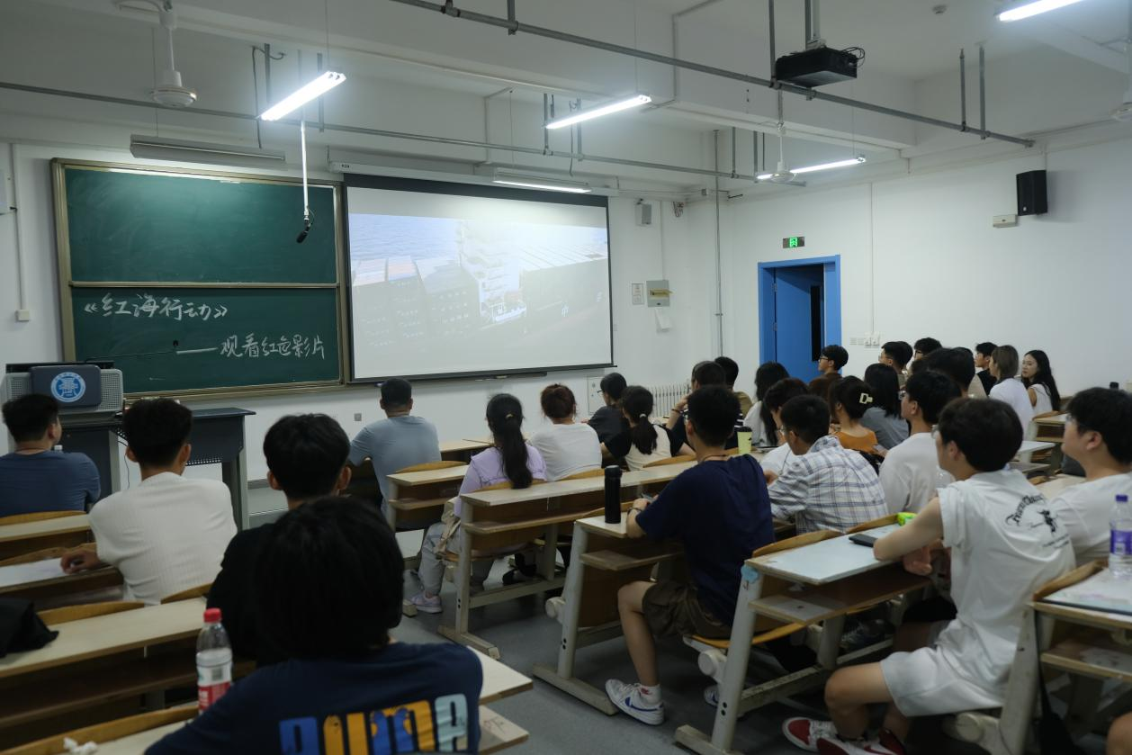 光影润心田,激励青年志。8月29日晚,组织新生各班级集体观看影片《红海行动》。影片叙述了中国海军特种部队“蛟龙突击队”不畏艰险、跨国救援的热血故事。当看到队员们在枪林弹雨中坚守使命、用生命守护同胞安全时,不少同学眼中泛起泪光。观影结束后,新生们围绕影片展开热烈讨论,纷纷表示被中国军人的担当精神与国家力量深深打动,未来将以更昂扬的姿态面对军训考验,以更坚定的信念投入大学学习,努力成长为有理想、有本领、有担当的新时代土木人,用实际行动诠释青春的意义与价值。