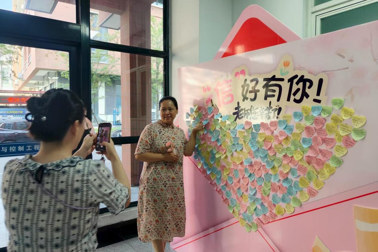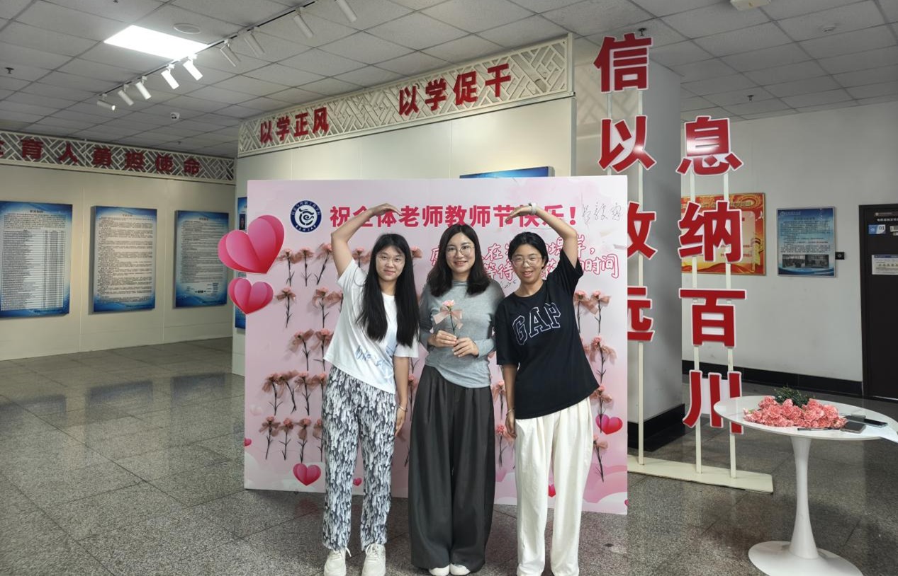 “信”好有你,汇聚温暖祝福。学院楼内精心设置“‘信’好有你”教师节主题签名祝福墙,成为教师节当天最热闹的打卡地。清晨开始,教师们陆续来到签名墙前,领取学院精心准备的鲜花,在墙面上签下名字,定格属于教育工作者的荣光。更引人注目的是贴满签名墙的手写贺卡 ——“感谢秦臻老师在实验室日夜陪伴我们比赛!”“感谢刘景华老师对我们信息231班学生的付出,感谢您的辛苦指导”……字里行间满是学生对老师的敬爱与牵挂。