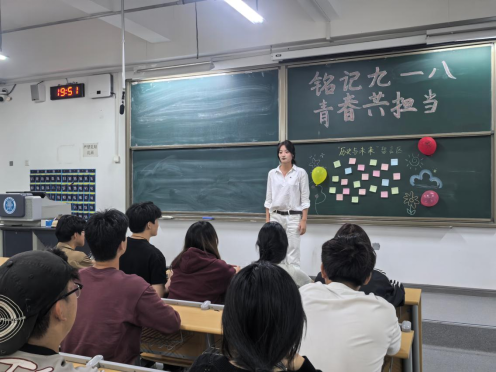 凝聚青春共识,共话使命担当。学院举办“铭记九·一八,青春共担当”主题演讲分享会,围绕九·一八事变历史背景、历史脉络及现实启示,学生纷纷结合自身思考阐述新时代青年的责任与担当。活动后,学生们将感悟汇成一张张便利贴,共同拼贴成一道“铭记国耻、使命在肩”的青春承诺墙,展现了青年一代的历史自觉与使命意识。营销252班何嘉讲到,“吾辈定当铭记历史,珍惜和平,努力学习,为实现中华民族伟大复兴的中国梦贡献青春力量。”