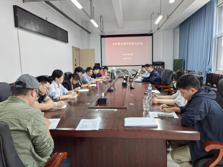 为全面贯彻落实党的二十大和二十届二中、三中全会精神,深入学习贯彻全国教育大会精神和习近平总书记关于教育的重要论述,深化本科教育教学改革,构建高质量教育教学体系,9月24日,管理工程学院根据《yl7703永利集团本科教育教学思想大讨论活动实施方案》,按照学院制定的本科教育教学思想大讨论实施方案,在C1-2-616会议室开展了本科教育教学思想大讨论活动。学院副院长(主持工作)赵辉、副院长万鹏、各系系主任、专业负责人、校级以上负责人教师代表参会,会议由赵辉主持。