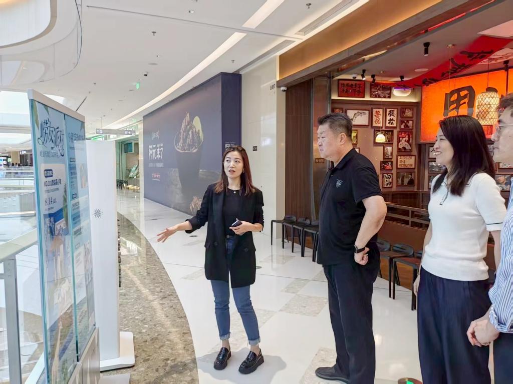 学院师生在崂山万象汇相关负责人带领下,实地参观了崂山万象汇的商业空间、艺术展陈及创新业态,重点了解了万象汇项目在文化创意、商业运营中的实践成果,以及学院学生在实习过程中实际参与的设计项目,为后续合作提供参考。