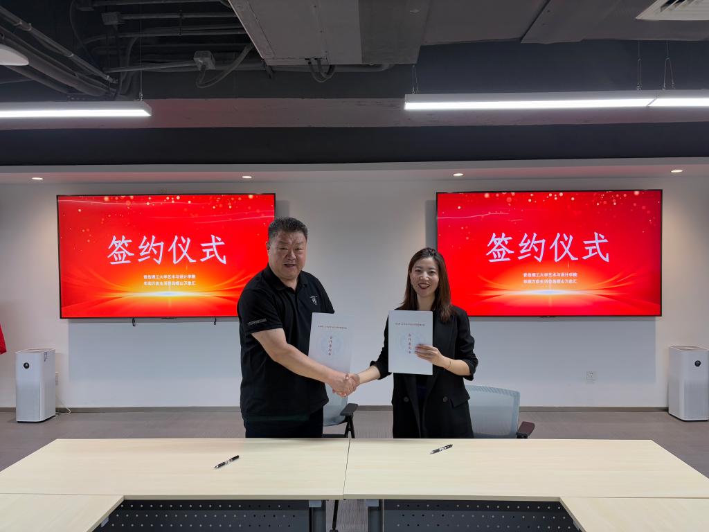为深化党建引领作用,推动校企协同发展,9月23日上午,艺术与设计学院与崂山万象汇开展党建共建活动暨就业创业实践基地揭牌签约仪式。双方通过资源共享、优势互补,共同搭建校企合作新平台,助力人才培养与产业需求深度融合。艺术与设计学院党委书记孙波,党委副书记、副院长张恬,视觉传达设计专业教师阎鹤,崂山万象汇总经理、华润万象生活青岛崂山万象汇支部书记张婕,以及崂山万象汇相关负责人、学院师生代表出席此次活动。