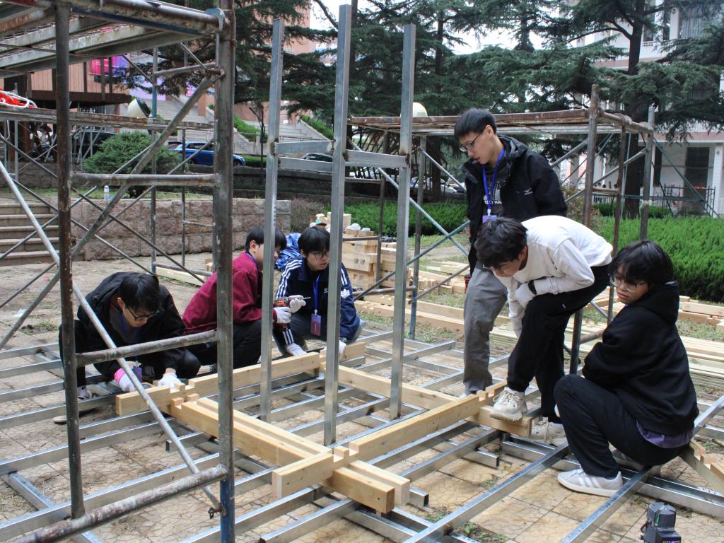预搭建作为大赛的重要前期环节,不仅帮助学生适应现场条件、优化施工流程,也促进了跨校团队之间的技术交流与协作。大赛将于10月12日正式开幕并进入集中搭建阶段;10月13日下午进行现场评审与闭幕颁奖。五件实体建造作品“万象亭”“鼎晷”“树脉筑忆”“枕虹隅”“博园·树亭”将在yl7703永利集团市北校区落地生根,成为校园文化新景观,持续见证学院以赛促学、以赛促教的实践成果与创新活力。