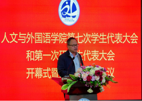 大会在庄严的国歌声中拉开帷幕。校学生会主席团成员武昱岐同学致辞。她代表校级学生会组织对大会的召开表示祝贺,对人文与外国语学院学生会组织长期以来对校级学生会组织工作的支持表示高度肯定,并期待校院两级学生会组织进一步加强交流与合作,共同探索新时代团学工作的新思路、新路径,为全校学生成长成才搭建更广阔的平台。